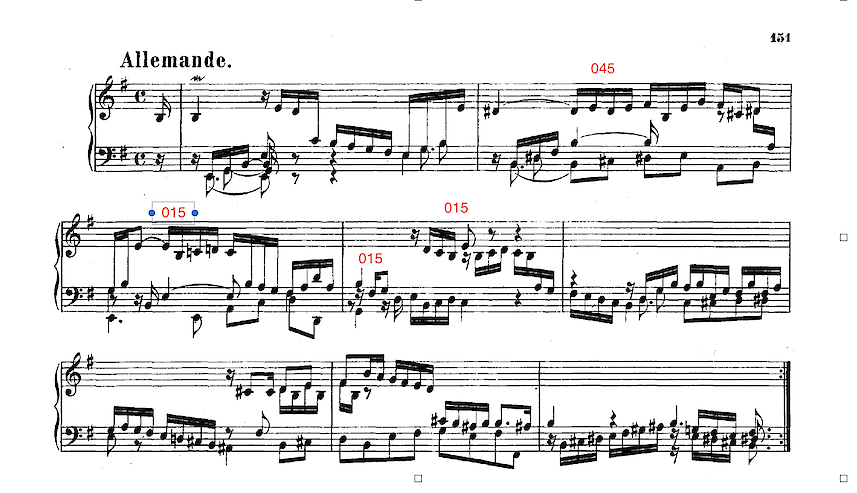 In the Allemande his move to the relative major is painted in 015 colors that he *holds* long enough to convince us that he’s holding that color. Reminds us of Brahms’ cello sonata – E - G - B C - B - etc.