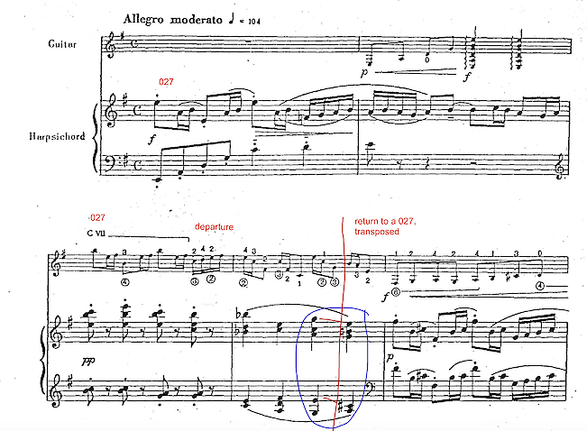 Here, in Manuel Ponce’s sonata for guitar and harpsichord, I think of 027 as being prolonged in much the same way that Schenker speaks of prolonging triads, but there’s not agreement about the words and and way to think about *prolonging dissonances*. We’re fighting the strict Schenkerians a bit on this point.