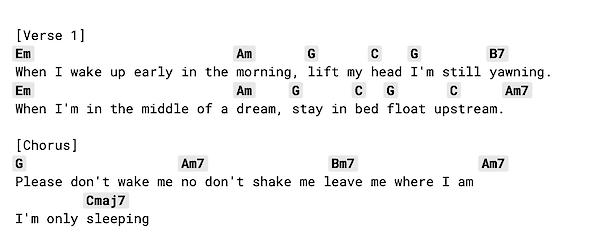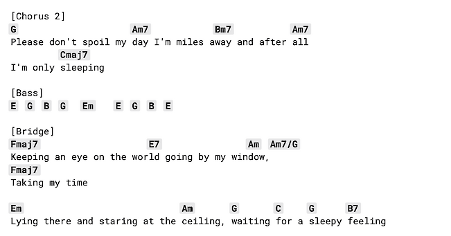 I’m Only Sleeping – The chorus is in the key of “minor 7th chord”. Or, can we say the minor 7th chord achieves middle