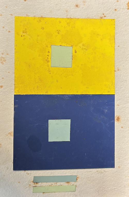 In the 90’s composer/pianist/producer Robert Pollock was still living in New Jersey where he worked closely with artist Robert Koenig, Director, successively of the Montclair Art Museum, the Noyes Museum and the Museum for African Art in Tenafly. Mr. Koenig became President of the Composers Guild of New Jersey, which was founded by Robert Pollock, who served as Artistic Director. Robert Koenig studied at Yale with Joseph Albers and shared all things Albers with Robert Pollock. These Analogues to Albers Color Studies are an artifact from the time that Pollock & Koenig spent working together.
