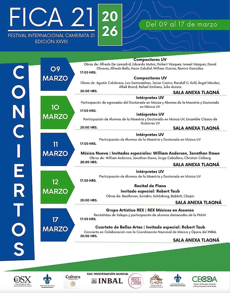 Pianist Robert Taub performs a solo program on Thursday, March 12 at the Tlaqna Cultural Center at the Universidad Veracruzana in Xalapa. The program includes works by Beethoven, Scriabn, Chopin, Schoenberg and Babbitt.